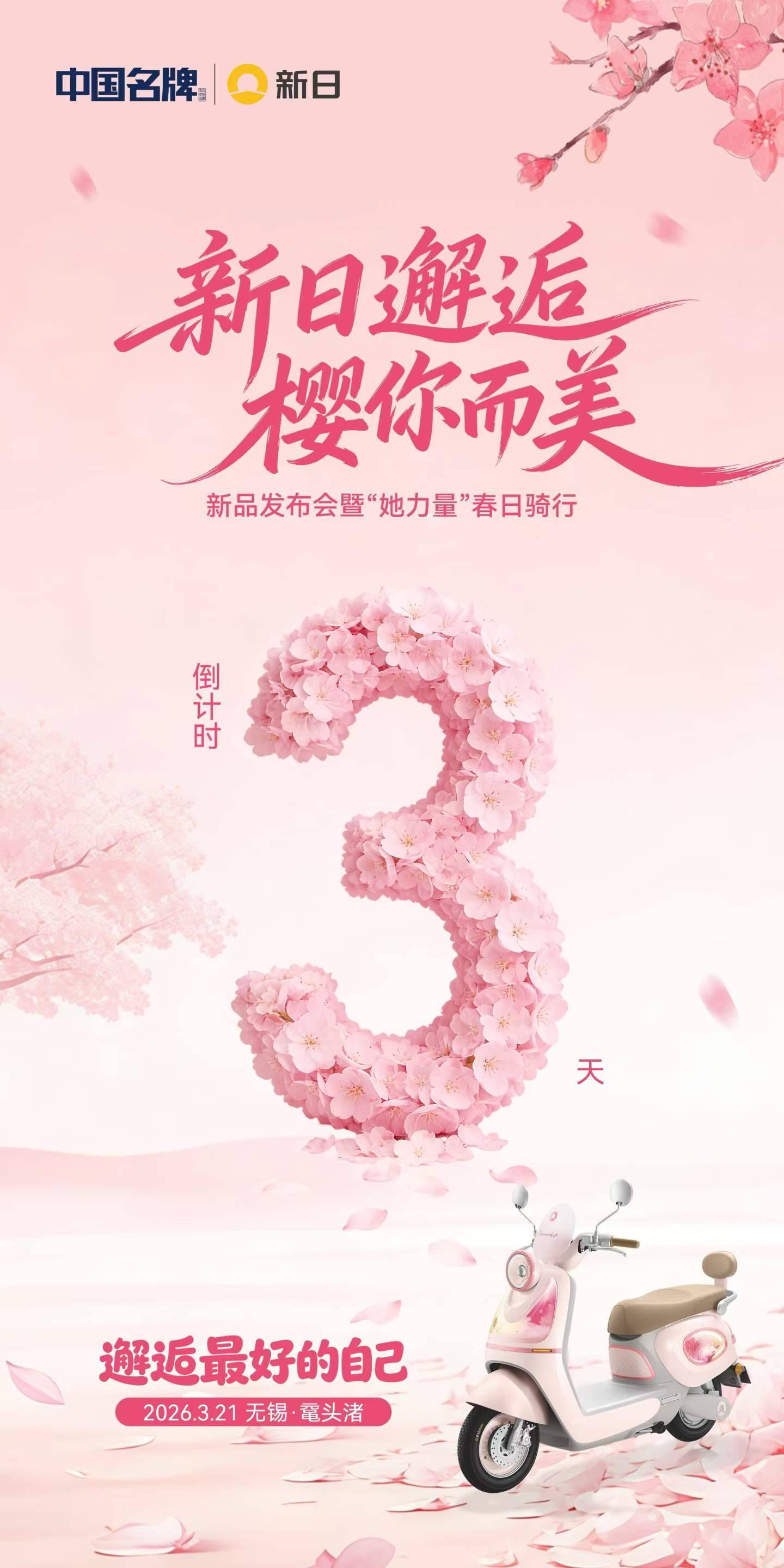 3月21日,无锡鼋头渚樱花谷,[新日邂逅 “樱”你⽽美]新品品鉴会即将浪漫空降!这款集颜值、舒适、安全与智能于一身的匠心之作,势必延续甜心的爆款传奇,成为2026年女性电动车市场的现象级存在。